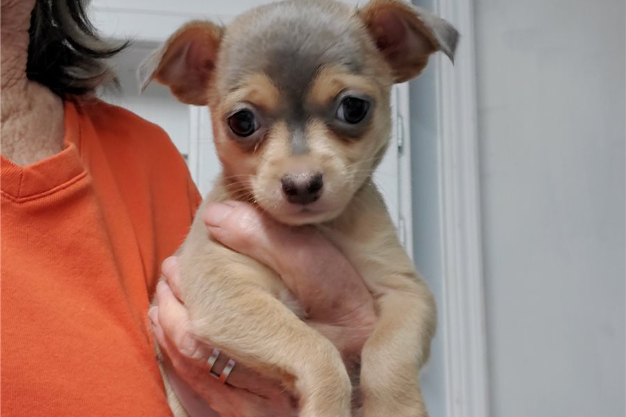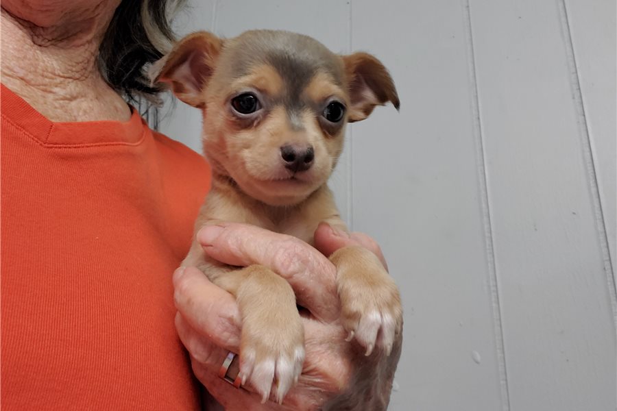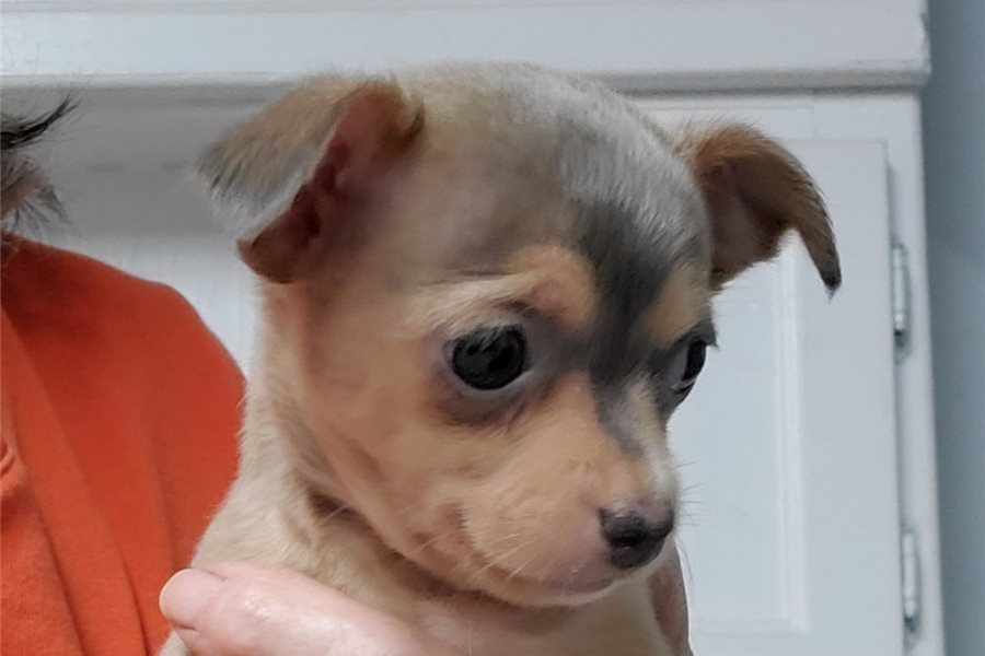 Meet Kara! She is a sweet little Chihuahua girl with a cute little cross on her face. She is going to make a nice snuggle buddy for most anyone. She is the largest of her litter but not the leader. She follows her sister’s lead most of the time, but she is also curious on her own and will figure things out if another isn’t there to. Kara comes with UABR registration papers. Bring her home with you today!